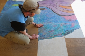 I did 63 sheets in A2-size and in the end assembled them on the floor of Menningahusid Berg, June 23rd. It was a fascinating experience to finally see the drawing coming into being as one complete piece. Before, every sheet, all 63 drawings, were individual parts. Now, the total size is 6.53m x 3.78m and the whale’s length is 7. 54m.